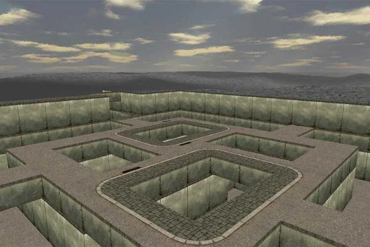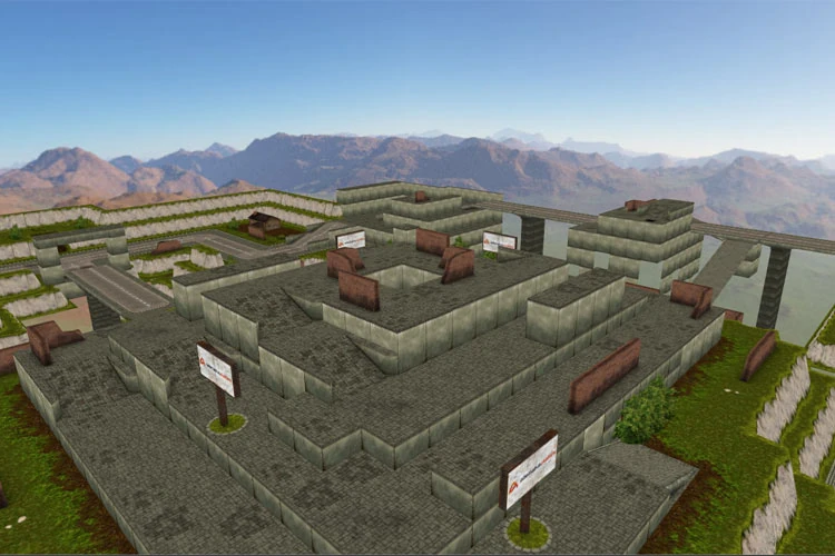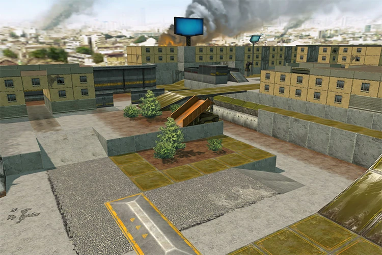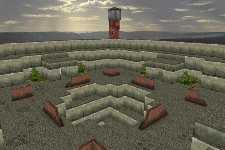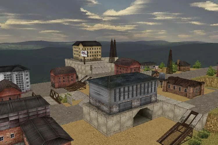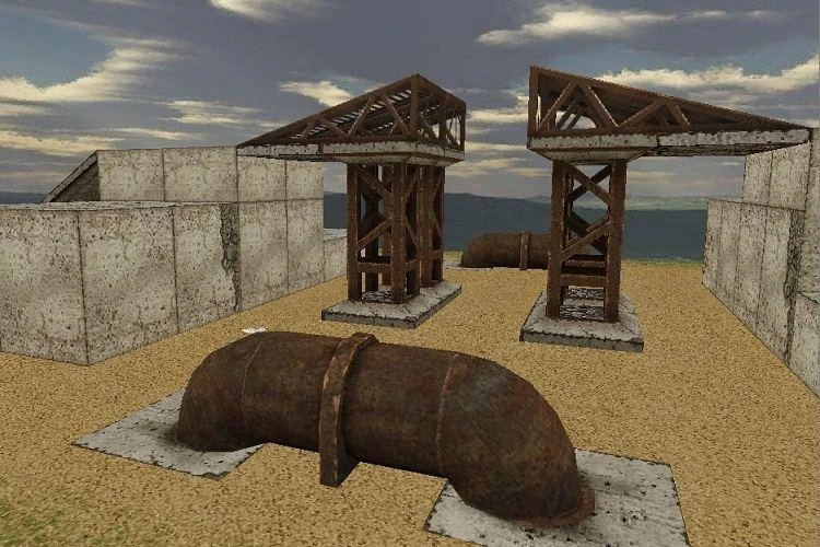Базы команд расположены на двух больших бетонных сооружениях. Между ними находятся небольшие улочки, в которых и происходят основные сражения.