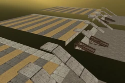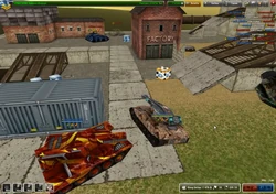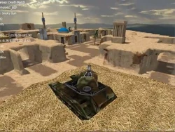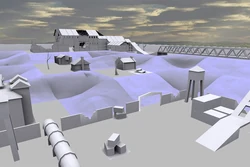 Карта была достаточно большая. По краям располагались небольшие холмики, ближе к центру были установлены трамплины из сломанных крыш. Имелось много ящиков и блоков, имелся небольшой туннель и мост. Некоторые объекты не имеют текстур.