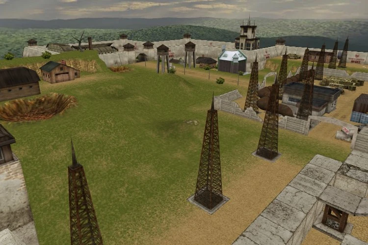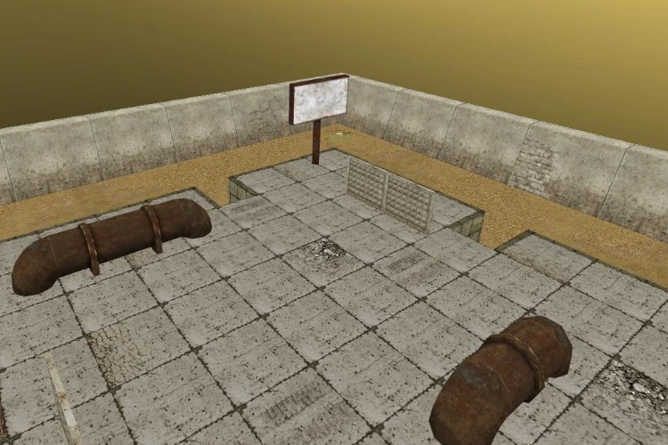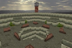 Сама же карта имеет небольшой размер. На ней находиться невысокое здание, криво-сделанный мост (возможно, потому, что пропы самого мосты не были полностью закончены), кирпичная башня, окруженная таким же забором, и дорога, которая пересекает всю карту.