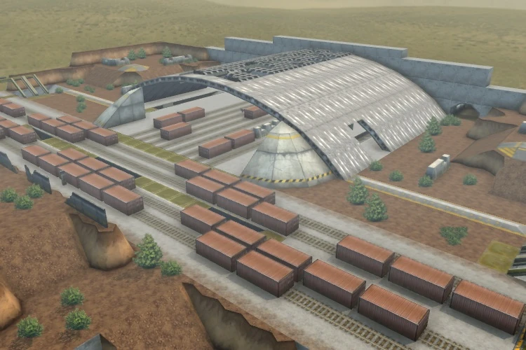 Представляла собой гигантское поле с разнообразными сооружениями, контейнерами и большим числом железнодорожных путей. Базы с флагами располагались на небольших возвышениях, их разделял большой бетонный проход. Проезжая данный проход, игрокам приходилось сначала ехать по нему вверх, а затем резко спускаться вниз. У лёгких корпусов имелся риск не удержаться и упасть в небольшие отверстия, встречавшиеся в некоторых частях данного прохода.
