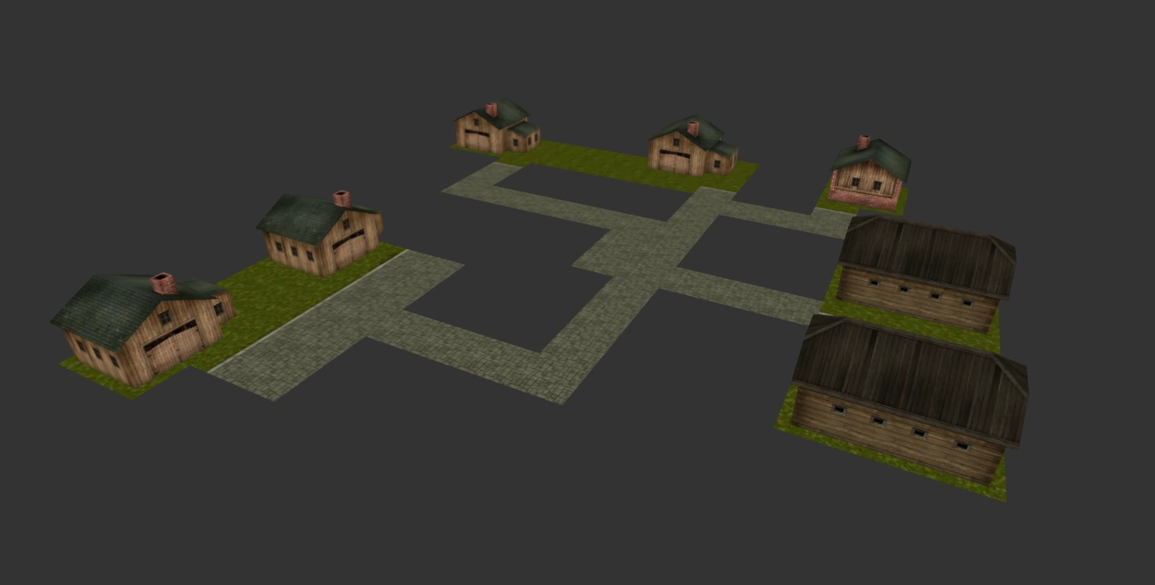 Карта состоит из нескольких платформ, на которых находятся деревянные домики. Каждая из платформ связана каменными дорожками.