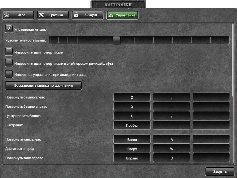 В ProTanki есть 2 вида управления: клавиатурное и управление мышью. Все клавиши управления можно переназначить на более удобные.